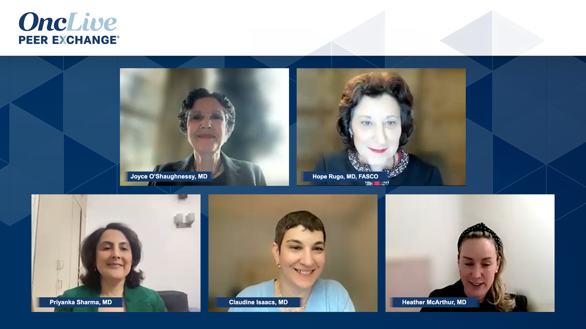 This is a video synopsis/summary of a Peer Exchange involving Joyce O’Shaughnessy, MD; Priyanka Sharma, MD; Claudine Isaacs, MD; Heather McArthur, MD; and Hope S. Rugo, MD, FASCO.
